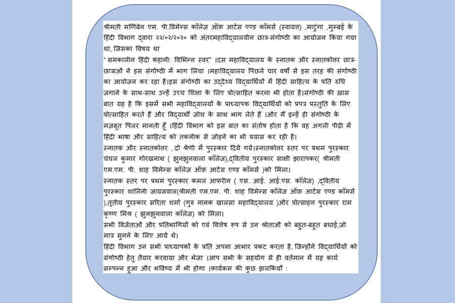 Intercollegiate Student Seminar - Hindi Dept.