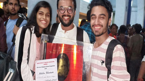 Our 60 Students performed a play Get Set Go! at the 48th IPTA Mumbai (Indian People’s Theatre Association)– ICDC (Inter Collegiate Drama Competition for one-act Hindi / Urdu / Hindustani plays) on Thursday, 26th September at Tejpal Auditorium and won Kaifi Azmi Trophy for Critics Award. They qualified the eliminations round amongst 21 best colleges from all over the state and were one of the top six finalist among colleges like Khalsa college and Ruparel college.