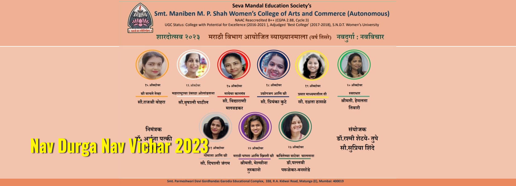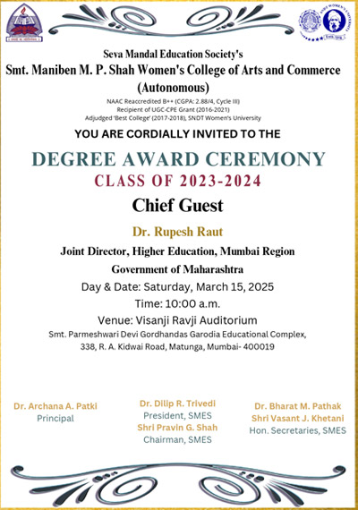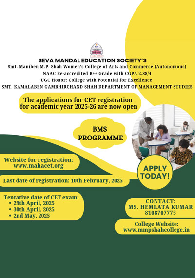 Seva Mandal Education Society (SMES) established in 1957 believes in the principle that Educate a man and you educate an individual; educate a woman and you educate the entire family! SMES has always been a pioneer in the field of women’s education starting colleges and courses as per the demands of society and providing women students a wide choice of courses.
